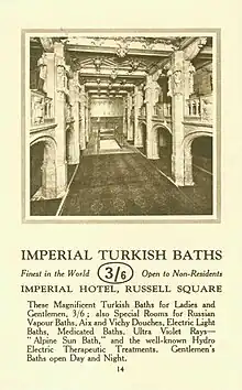 Baths run by individuals or partnerships were also more likely to have a longer life than those run by companies, being easier to sell on to a new owner. The King's Cross Turkish Baths in Caledonian Road, London, for example, had four proprietors between 1870 and 1912 when the fifth, William Cooper, put it together with others to form a company, Savoy Turkish Baths Ltd. It survived in this form until it was closed by the company in 1921.[76]