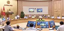 On 23 January, Vietnam confirmed its first case. Shortly afterward, the Prime Minister Nguyễn Xuân Phúc ramped up Vietnam's response by issuing an urgent document to ministries, provinces, and broadcasting agencies addressing the dangerousness of the virus and the need for measures to prevent local transmission.[9] On 24 January, just one day after the first cases, the Civil Aviation Administration of Vietnam ordered the cancellation of all flights from and to Wuhan.[10][11][12] As Vietnam celebrated the Tết holiday, the Prime Minister declared war on the coronavirus. "Fighting this epidemic is like fighting the enemy", he said at an urgent Communist Party meeting on 27 January.[12]