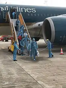 On 31 March 2020, the Vietnamese government ordered a nationwide isolation of 15 days from 1 to 15 April.[26] From 16 April, local airlines could raise the number of domestic flights, which were subsequently further increased on 23 April and again on 29 April.[27][28][29]
