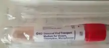 Viral transport medium (VTM) is a solution used to preserve virus specimens after collection so that they can be transported and analysed in a laboratory at a later time. Unless stored in an ultra low temperature freezer or in liquid nitrogen, virus samples, and especially RNA virus samples, are prone to degradation. However, such cooling equipment is seldom available in the field due to their cumbersome size, weight, and in the case of freezers, high energy consumption. Hence, there is a need for VTM; a chemical preservative that can be used at ambient temperature. Chemical components may include saline solution, phosphate-buffered saline (PBS), or fetal bovine serum (FBS). VTM must be sterile to avoid introducing contamination to the specimen.[1][2]