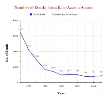 - 1 2 Das, Aritra; Karthick, Morchan; Dwivedi, Shweta; Banerjee, Indranath; Mahapatra, Tanmay; Srikantiah, Sridhar; Chaudhuri, Indrajit (2016-11-01). "Epidemiologic Correlates of Mortality among Symptomatic Visceral Leishmaniasis Cases: Findings from Situation Assessment in High Endemic Foci in India". PLOS Neglected Tropical Diseases. 10 (11): e0005150. doi:10.1371/journal.pntd.0005150. ISSN 1935-2735. PMC 5117587. PMID 27870870.
