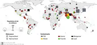 - ↑ "Drinking-water". WHO. 21 March 2022. Fact sheet. Archived from the original on 30 September 2021. Retrieved 23 February 2023.