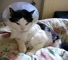 Wound licking is beneficial but too much licking can be harmful. An Elizabethan collar may be used on pet animals to prevent them from biting an injury or excessively licking it, which can cause a lick granuloma. These lesions are often infected by pathogenic bacteria such as Staphylococcus intermedius.[39] Horses that lick wounds may become infected by a stomach parasite, Habronema, a type of nematode worm. The rabies virus may be transmitted between animals, such as the kudu antelopes by wound licking of wounds with residual infectious saliva.[40]