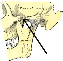 ![]() Articulation of the mandible. Lateral aspect (Zygomatic process visible at center) | |