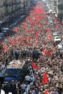 Álvaro Cunhal died in Lisbon in 2005, after several years out of the public eye. His funeral took place on 15 June in Lisbon and was attended by more than 250,000 people.[3][4]