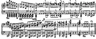 Last bars of Franz Liszt's Transcendental Étude No. 2: one of the most difficult of Liszt's études, this is a study in passages for alternating and overlapping hands.