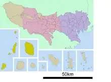 Ōshima Subprefecture in Tokyo Metropolis (labelled in yellow)