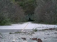 The airbase was used intensively in 1991, during the Yugoslav Wars. During its withdrawal, the Yugoslav People's Army destroyed the runway by filling pre-built spaces (designed for the purpose) with explosives and detonating them. To prevent any possible further use of the complex by Croatian and Bosnia-Herzegovinan forces, the Military of Serbian Krajina completed the destruction in 1992 by setting off an additional 56 tonnes of explosives. The ensuing explosion was so powerful that it shook the nearby city of Bihać. Residents of nearby villages claimed that smoke continued to rise from the tunnels for six months after the explosion.