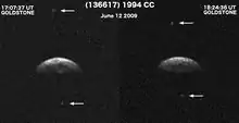 - 1 2 3 4 Brozovic, M.; Benner, L. A. M.; Nolan, M. C.; Howell, E. S.; Magri, C.; Giorgini, J. D.; et al. (June 2009). "(136617) 1994 CC". IAU Circ. (9053). Bibcode:2009IAUC.9053....2B. Retrieved 22 March 2017.