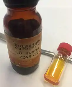(Butadiene)iron tricarbonyl is an organoiron compound with the formula (C4H6)Fe(CO)3. It is a well-studied metal complex of butadiene.[1] An orange-colored viscous liquid that freezes just below room temperature, the compound adopts a piano stool structure.[2]