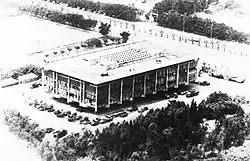 A few moments passed before the truck exploded, bringing down the nine-story building and killing 58 French paratroopers.[46] It is believed that this bomb was detonated by remote control and that, though similarly constructed, it was smaller than and slightly less than half as powerful as the one used against the Marines.[46] Many of the paratroopers had gathered on their balconies moments earlier to see what was happening at the airport.[47] It was France's worst military loss since the end of the Algerian War in 1962.[48]