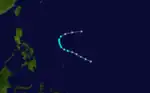 The initial disturbance was first spotted 250 miles (402 km) east of Mindanao. Moving westward for the next few days without development, the system moved into the South China Sea. The system became a tropical storm on October 7 to due significantly increased low-level southwesterlies spinning up its circulation. The cyclone then moved west-northwest, striking Nha Trang, Vietnam. The convective pattern was slow to fade as it drifted westward across Indochina over the next few days.[19] Forty perished during this tropical cyclone.[1]