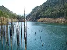 - A lake was formed after a landslide blocked a river.