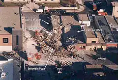 ![]() An aerial photo of the accident site following the explosion | |