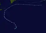 Tropical Depression 09W developed from an area of convection about 1,000 km (620 mi) to the east of Iwo Jima on July 21. Continued consolidation of its convection prompted both the JTWC to classify it as a tropical storm on 18:00 UTC.[27] The JMA followed suit six hours later and named it Kong-rey.[13] By July 23, the JTWC upgraded Kong-rey to a typhoon while the JMA upgraded it to a severe tropical storm.[13][11] A mid-latitude ridge to the east of Japan strengthened, causing Kong-rey to curve and move in a northeastward direction.[27] Kong-rey reached its peak intensity on July 25, then slightly weakened afterwards. At the same time, the JMA had finally upgraded Kong-rey to a typhoon.[13] On July 26, a redevelopment of a small eye caused Kong-rey to reach its second peak intensity for a short period of time. Its peak strength only maxed out to 10-minute sustained winds of 130 km/h (81 mph). Increasing wind shear caused the typhoon to weaken the next day. Kong-rey was downgraded to a tropical storm on 00:00 UTC of July 28.[27] Both agencies issued their final warning later that day when it had become extratropical.[13][11] Its remnants was still tracked until it reached the southwestern Aleutian Islands on August 3.[27]