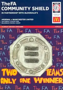 The 2004 Football Association Community Shield (also known as The FA Community Shield in partnership with McDonald's for sponsorship reasons) was the 82nd staging of the FA Community Shield, an annual football match contested by the reigning champions of the Premier League and the holders of the FA Cup. It was contested on 8 August 2004 by Arsenal, champions of the 2003–04 Premier League, and Manchester United, who beat Millwall in the final of the 2003–04 FA Cup. Watched by a crowd of 63,317 at the Millennium Stadium, Arsenal won the match 3–1.