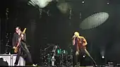 According to Dean DeLeo, steps toward a reunion started with a simple phone call from Weiland's then-wife, Mary Forsberg.[3] She would later invite the DeLeo brothers to play at a private beach party, which led to the reconciliation of Weiland and the DeLeo brothers.[3] In 2007 Dean DeLeo discussed with Weiland an offer from a concert promoter to headline several summer festivals.[4] Weiland accepted and said he had cleared the brief tour with his Velvet Revolver bandmates.[4] Weiland said "everything was cool. Then it wasn't", and stated that the rest of the band stopped talking to him.[4] As a result, Weiland announced in the middle of a Velvet Revolver show on March 21, 2008 in Glasgow that it would be his last performance with the group.[4]