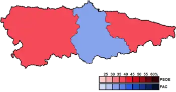 ![]() Constituency results map for the General Junta of the Principality of Asturias | |||||||||||||||||||||||||||||||||||||||||||||||||||||||||||||||||||||||