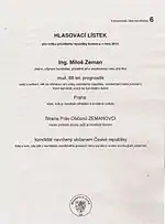 - ↑ Danda, Oldřich. "Schwarzenberg hodil do urny lístek bez obálky, jeho hlas neplatí". Novinky.cz. Retrieved 25 January 2013.