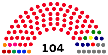 SWAPO announced a gender equality system where women would fill half of their seats in parliament. The party also embraced what it called a "zebra system", whereby if a minister was a woman, the deputy minister would be a man, and vice versa. Because there were more male SWAPO MPs than female MPs, SWAPO put forward plans to expand parliament to remove the risk of male MPs losing their seats as a result of this gender policy.[7] These changes to the constitution were approved a month prior to the election against the votes of opposition parties, as SWAPO had a two-thirds majority in Parliament.[8] Since then, instead of 78 seats (72 elected, 6 appointed) there 104 seats in the National Assembly (96 elected, 8 appointed).[9]
