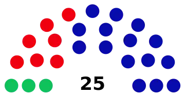 All 25 seats in the House of Assembly 13 seats needed for a majority | |||||||||||||||||||||||||||||||||||||||||||||