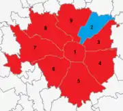 ![]() Result of second round voting by Milan municipalities. Red municipalities are those with most votes for Sala and Azure those for Parisi. | ||||||||||||||||||||||||||