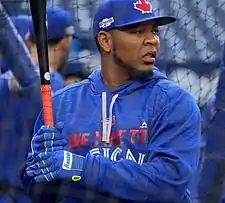 - ↑ Davidson, Neil (October 14, 2016). "Blue Jays' bats silenced in ALCS Game 1 loss to Cleveland". cbc.ca. Retrieved October 19, 2016.