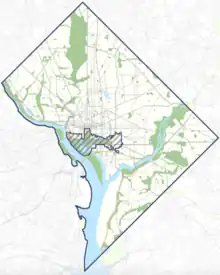 1. The Residence Act allowed the President to select a location within Maryland as far east as the Anacostia River. However, the District of Columbia shifted the federal territory's borders to the southeast to include the city of Alexandria at the District's southern tip. In 1791, Congress amended the Residence Act to approve the new site, including territory ceded by Virginia.[3]