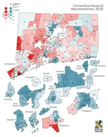 - ↑ The Connecticut Senate was tied in the 2017-2019 session, but Democrats gained control in the 2018 elections. This chamber was not included in the previous total.