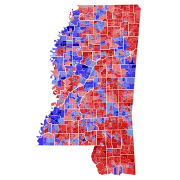 Situated in the Deep South as a socially conservative Bible Belt state, Mississippi is one of the most Republican states in the country. No Democrat has been elected to the governorship since Ronnie Musgrove in 1999. However, the state's Democratic Attorney General, Jim Hood, who had held his office since 2004 and had yet to lose a statewide election, put the Republicans' winning streak of four elections in a row to the test, as the race became unusually competitive. Reeves defeated Hood in the general election by a margin of 5.1%, making this the closest a Democrat had come to winning a Mississippi gubernatorial election since 1999. Hood pulled off the best performance by a Democrat since the 2003 Mississippi gubernatorial election, when fellow Democrat Ronnie Musgrove took 45.81% of the vote.[2] Hood flipped the counties of Chickasaw, Lafayette, Madison, Panola, and Warren, which had all voted for Republican Donald Trump in the 2016 United States presidential election.