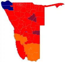 Hage Geingob of SWAPO was re-elected to the presidency, although his vote share was reduced from 87% in 2014 to 56%, their lowest vote share for a presidential election in the party's history.[3] SWAPO also retained their majority in the National Assembly, but lost their two-thirds supermajority.[4] SWAPO had held a two-thirds majority since the 1994 elections.[5]