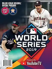 For the third straight year, MLB sold presenting sponsorships to all of postseason series. As with the 2017 and 2018 World Series, this World Series was sponsored by YouTube TV and was officially known as the 2019 World Series presented by YouTube TV.[8]