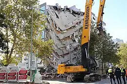 Initially, Turkish Minister of the Interior Süleyman Soylu stated that at least six buildings were destroyed in İzmir, but the city's mayor Tunç Soyer later put the number of collapsed buildings closer to 20.[62] On-site investigations by the Turkish Ministry of Environment and Urbanization revised the number of collapsed and intentionally demolished buildings to 103. At least 700 other buildings suffered serious damage, and in 814, damage was moderate. Slight structural damage was reported in across 7,889 buildings, while the other 159,000 were unaffected.[79]