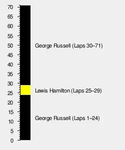 Russell built a three-second gap to Sergio Pérez after the first round of pit stops, with a further seven seconds to Sainz in third and Hamilton in fourth. Sainz was switched to a three-stop strategy after an early first stop due to a visor tear-off getting caught in his rear right brake duct. This allowed him to undercut Pérez for second, with the Red Bull driver having already been passed by Hamilton three laps prior.