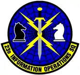 The squadron was again activated as the 23rd Information Operations Squadron in 2000.[1] The mission of the squadron was to deliver full spectrum information operations tactics to the warfighter. The squadron was inactivated in 2011[1] and its resources and personnel transferred to the 318th Operations Support Squadron.