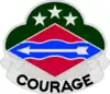 The unit's shoulder sleeve insignia consists of a Bowie knife over a diamond.[31] The Bowie knife symbolizes the state of Arkansas, where the Bowie knife originated, and close hand-to-hand fighting which is the specialty of the light infantry. The diamond is a reference to a unique aspect of the state of Arkansas which has the only diamond field in North America in Murfreesboro. The red and blue colors are the colors of the state flag and represent both their loyalty (blue) and the blood (red) that its soldiers have shed for both the state of Arkansas, and the United States in its operations. The brigade motto is "Courage".