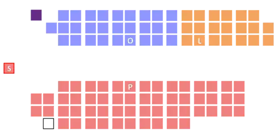 | Government majority | 9 | 10 | 11 | 12 | 13 | 12 | 11 | 10 | 9 | 8 | 9 | 8 | 7 | 6 | 7 | 8 | 7 | |||||