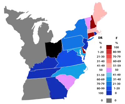 ![]() Senators' party membership by state at the opening of the 7th Congress in March 1801.