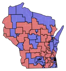 - ↑ Republican Roger P. Murphy (33rd District) resigned after he was appointed a Wisconsin circuit court judge.