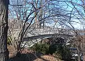Southwest Reservoir Bridge, at 85th Street in Central Park, was designed by Calvert Vaux and is decorated with elegant iron floral scroll ornamentation along its 38 feet (12 m) of railings and spandrels.[34][35][36]