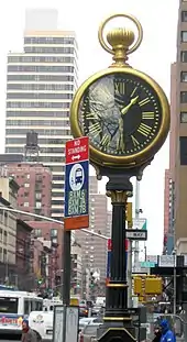 The sidewalk clock at East 85th Street and Third Avenue, dating from the late 1800s and likely produced by E. Howard & Co., was designated a landmark in 1981.[20] Constructed to resemble a pocket watch, it is 15 feet (4.6 m) high including its base.[20]