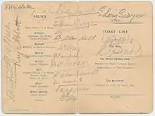 Dixon was a member of the Motor Cycling Club and attended their 1913 Annual Dinner that was held at the Trocadero Restaurant. The photographs show the menu card that Dixon kept. It has signatures of the leading lights if the motorcycle world who became really big in the motor trade - Charles Jarrott who became head of the Automobile Association; Lionel Martin and Robert Bamford who went on to start Aston Martin. . The menu was donated to the National Motorcycle Museum by the family in 2019.