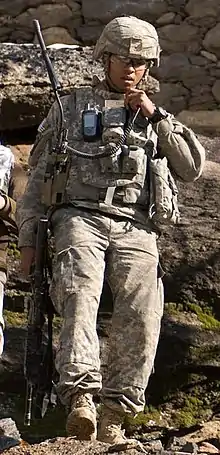 The MBITR was developed by the United States Special Operations Command (USSOCOM) and Thales Communications in the 1990s and went into production in 1994, to address the need for a secure multiband handheld radio.[4] It has been more widely deployed with Stryker Combat Teams and with troops deploying to Iraq and Afghanistan. As of August 2007, 100,000 MBITRs have been fielded,[5] over 31,000 of which are in use by the US Army.[6]