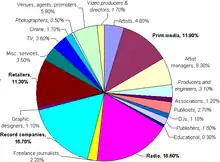In 2005, the generalist categories were determined by the "voting academy", which consisted of about 1000 representatives from across the music industry. Members of the academy are kept secret. Membership is by invitation only. An individual record company may have up to eight members on the academy. The only artists eligible to vote are winners and nominees from the previous year's awards. (See pie chart at right.)