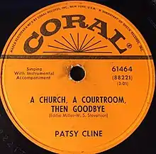 5. 1 2 Cline, Patsy (July 20, 1955). ""A Church, a Courtroom, Then Goodbye" / "Honky Tonk Merry Go Round" (7" vinyl single)". Coral Records. 61464.