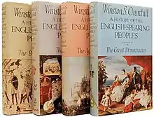 A History of the English-Speaking Peoples is a four-volume history of Britain and its former colonies and possessions throughout the world, written by Winston Churchill, covering the period from Caesar's invasions of Britain (55 BC) to the end of the Second Boer War (1902).[1] It was started in 1937 and finally published 1956–1958, delayed several times by war and his work on other texts. The volumes have been abridged into a single-volume, concise edition.