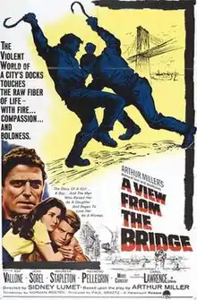 A View from the Bridge (French: Vu du pont, Italian: Uno sguardo dal ponte) is a 1962 drama film directed by Sidney Lumet, based on the Arthur Miller play of the same name.[1] The film was an international co-production between French and Italian studios, with exteriors shot on-location in Brooklyn and interiors filmed in Paris, France. It was written for the screen by Norman Rosten and Jean Aurenche, and stars Raf Vallone as Eddie Carbone, Maureen Stapleton as Beatrice, Carol Lawrence as Catherine, Jean Sorel as Rodolpho, Raymond Pellegrin as Marco, and Morris Carnovsky as Alfieri.