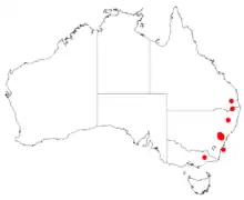 The shrub is found between Newnes Junction and Lawson in the Blue Mountains where it grows in sandy soils over and around sandstone s a part of dry sclerophyll forest less frequently heath-land communities.[1]