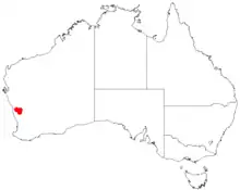 It is native to a small area in the Mid West region of Western Australia where it is commonly situated on breakaways, low hills and plains and along creeks growing in sandy-clay or clay-loam soils based on granite.[3] The limited range of the plant extends from around Coorow in the south to around Three Springs in the north usually as a part of shrubland or open Eucalyptus wandoo woodland communities.[4]