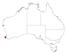 It is native to an area in the South West region of Western Australia where it is found growing in sandy soils over and around limestone.[2] The range of the plant extends from near Witchcliffe in the north and around Augusta with the bulk of the population located to the west of Karridale usually as a part of Eucalyptus diversicolor (karri) forest communities.[1]